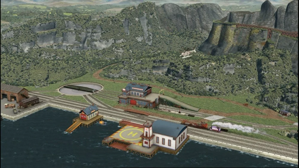 Das Such- und Rettungszentrum von Sodor wurde im April 1960 als zentrale Anlaufstelle für Rettungsdienste auf Sodor errichtet. Das Hauptgebäude des Rettungszentrums ist zweistöckig. Gleise führen in einen darunterliegenden Lokschuppen, und eine Rampe bietet Straßenzugang zu einer Garage im Obergeschoss. Entlang der Küste befinden sich ein Bootshaus für Captain und ein Hubschrauberlandeplatz für Harold. In der Nähe des Rettungszentrums befindet sich ein Unterwassertunnel, der zur Nebelinsel führt.